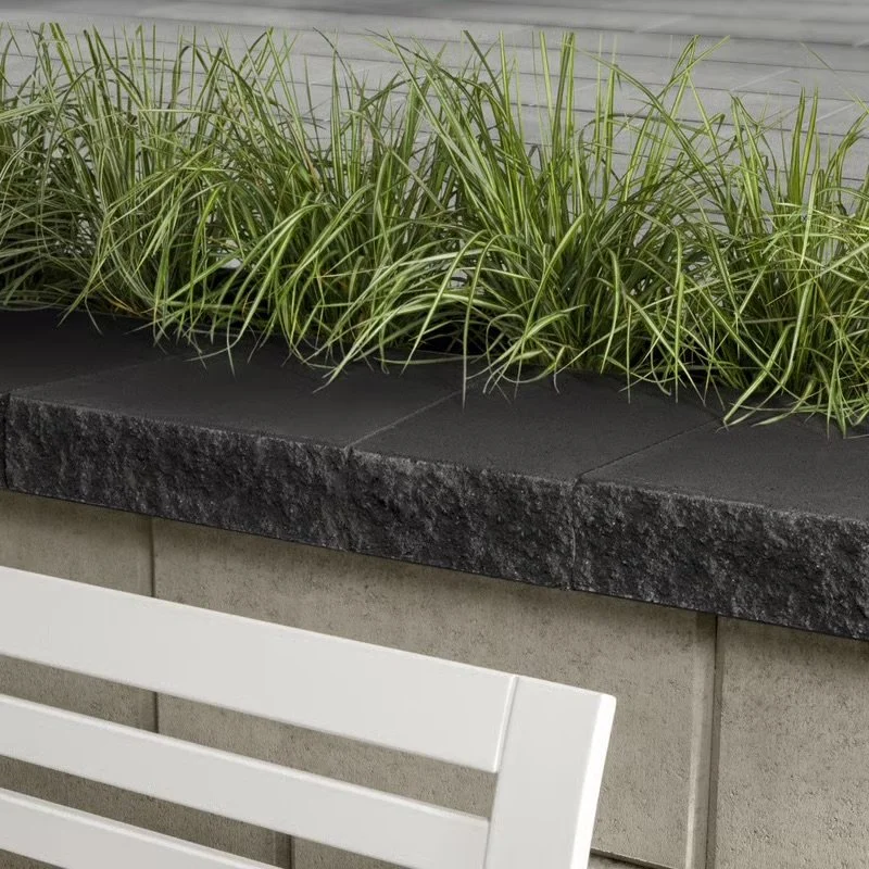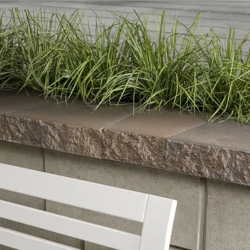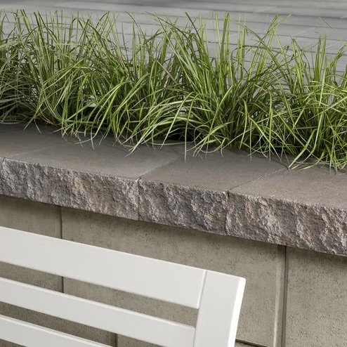 Architectural CapThis crisp split-face cap is the perfect finishing touch to your landscape retaining walls and steps. The Architectural cap has a double-sided face so it looks good from every angle and provides thin seams between each cap on linear walls. It’s also a great option for curved walls (7’ radius) thanks to its tapered units.